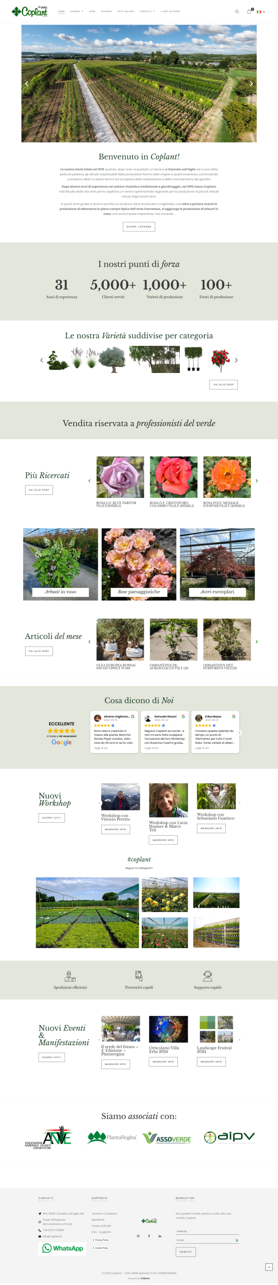 Per Coplant, azienda leader nel settore florovivaistico con sede a Canneto sull’Oglio (MN), abbiamo realizzato un sito web completo, progettato per valorizzare la loro storia, la varietà della produzione e la presenza sul mercato italiano ed estero.